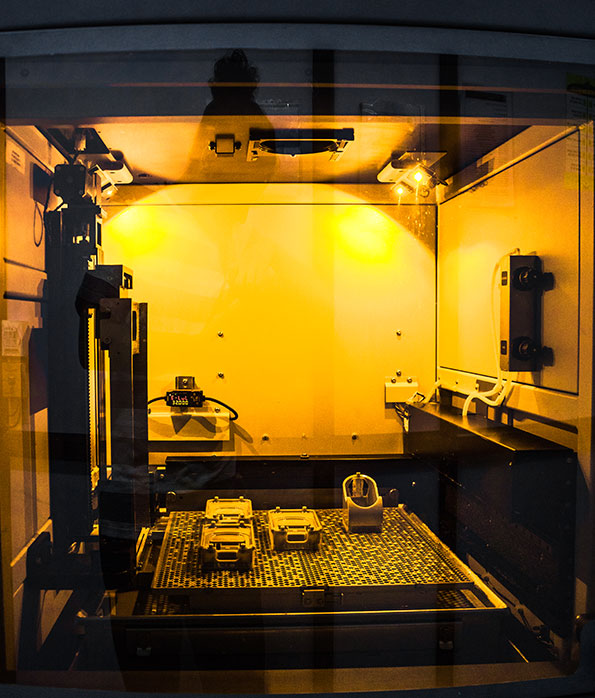 Stereolithography is a 3D Printing process wherein, a vat of liquid photopolymer and an ultraviolet laser is used to build parts in layers, one at a time. For each layer, the laser beam traces a cross-section of the part in 2D, on the surface of the liquid resin. Exposure to the ultraviolet laser light cures and solidifies the 2D pattern traced on the resin and joins it to the layer below. In general, SLA parts have high accuracy and excellent feature details. With the advent of new resins, SLA part strength has dramatically improved. We at 3DPD believe in exploiting the best of SLA technology and are the only SB in India offering 5 different SLA materials. From large platform machines (over 600mm in X and Y)to the industry standard 3D Systems ProJet machines, 3DPD possesses the state of the art, SLA machines which gives you high quality parts with excellent properties, quickly.